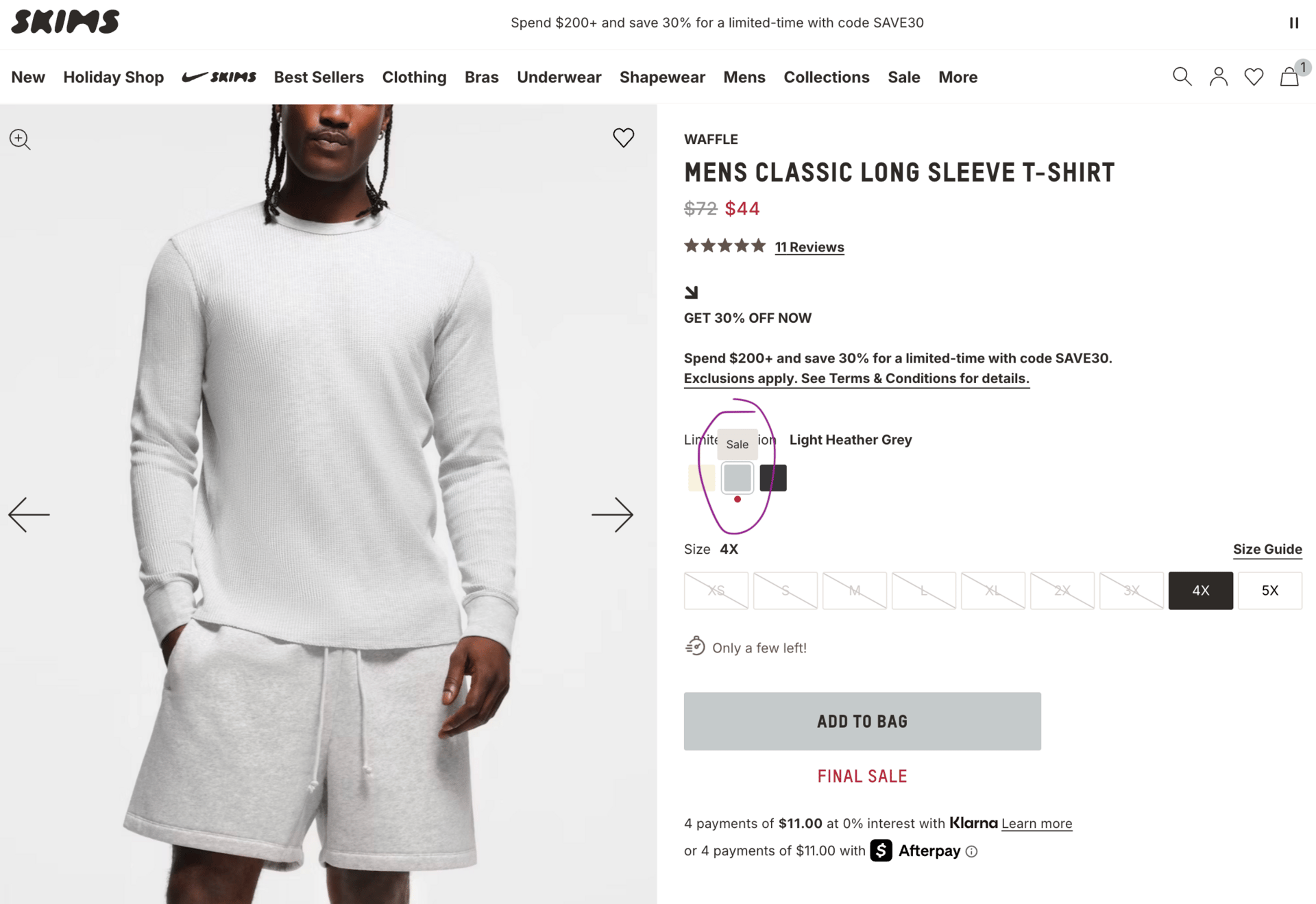 When you hover over some colorway icons, you might find an extra reminder that it’s on sale…