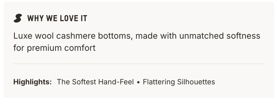 SKIMS adds “Why we love it” call-outs in the bottom-right of their PDP hero sections.
