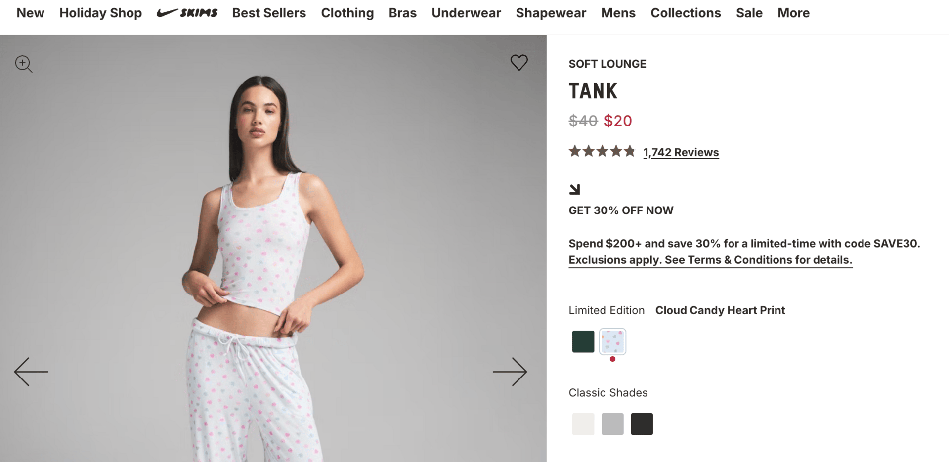 I’m far from an expert, but I peruse dozens of sites every month to see how site designs and UI/UX are evolving, and I found a collection of little details on SKIMS’ site that are pushing the envelope, hitting best practices, and almost certainly powering stronger revenue/CVR/AOV.