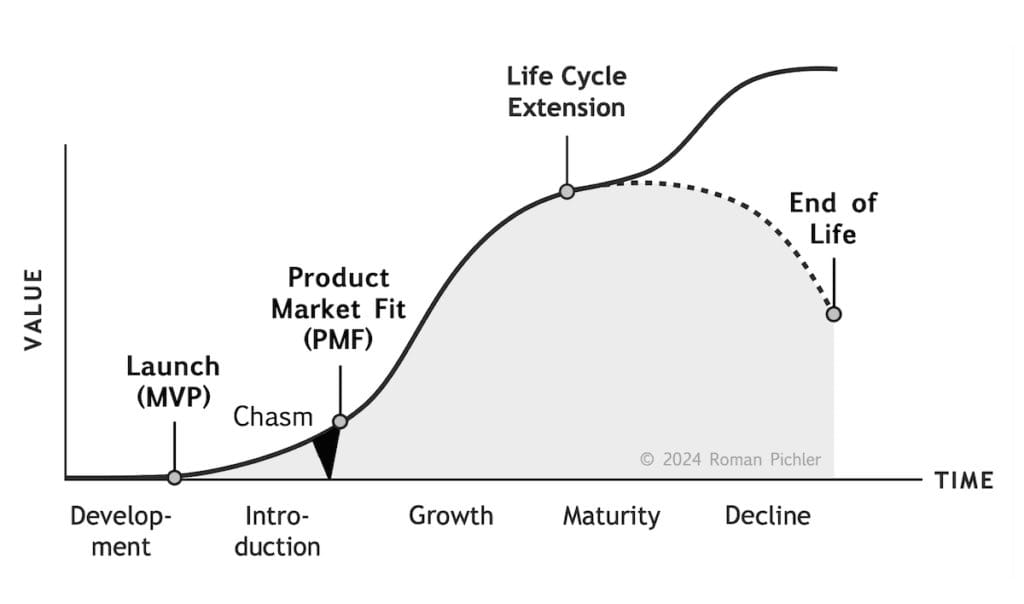 There are two types of extensions: “newness” or “improvedness.” And when you’re nearing the end of the maturity phase, you have to either decide to extend the product or end the lifecycle.
